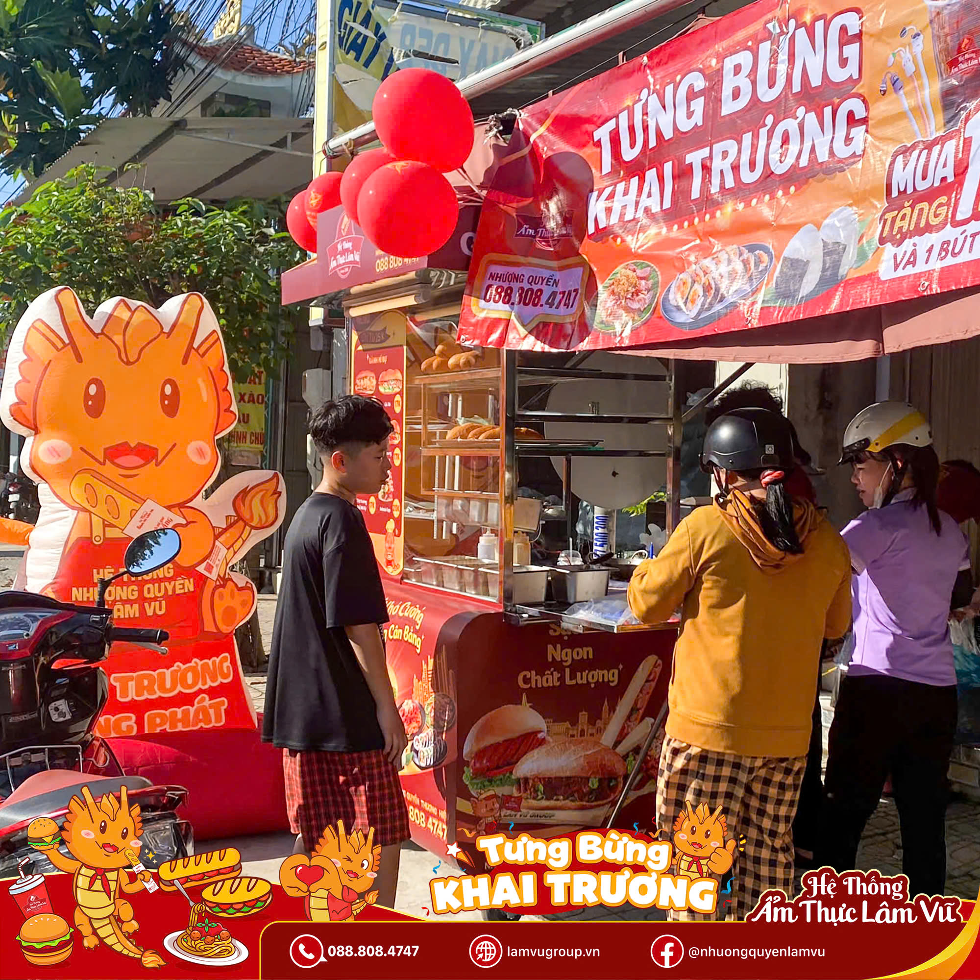 Hân hoan chúc mừng các Ông Chủ – Bà Chủ mới đã khai trương thành công với mô hình nhượng quyền đa dạng món siêu hút khách của Ẩm Thực Lâm Vũ: