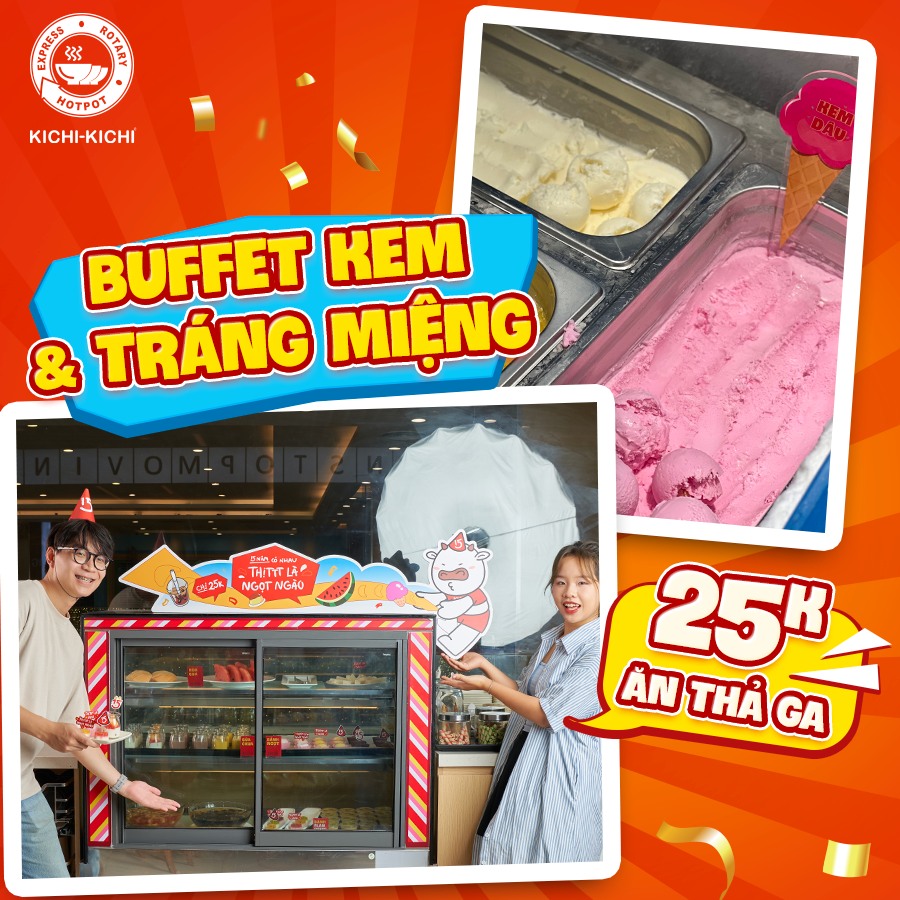 🔴 Buffet Kem 25K, ăn là ghiền 20 vị kem: Kem dừa, vani, socola và bao nhiêu vị hot trend khác, được sản xuất bởi Golden Gate Foods.
