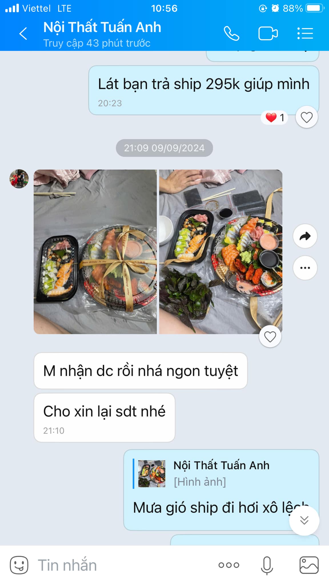 Feedback của khách đặt Sushi nhà Tiến sushi