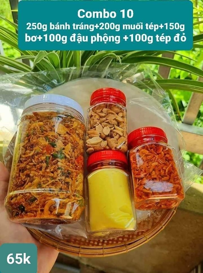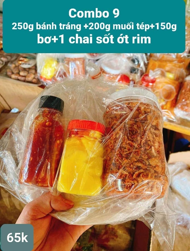 ❌ Combo 2 bao gồm: 500gam bánh tráng – 200gam tép hành phi – 150gam bơ nha giá 65k/combo,2 combo miễn ship