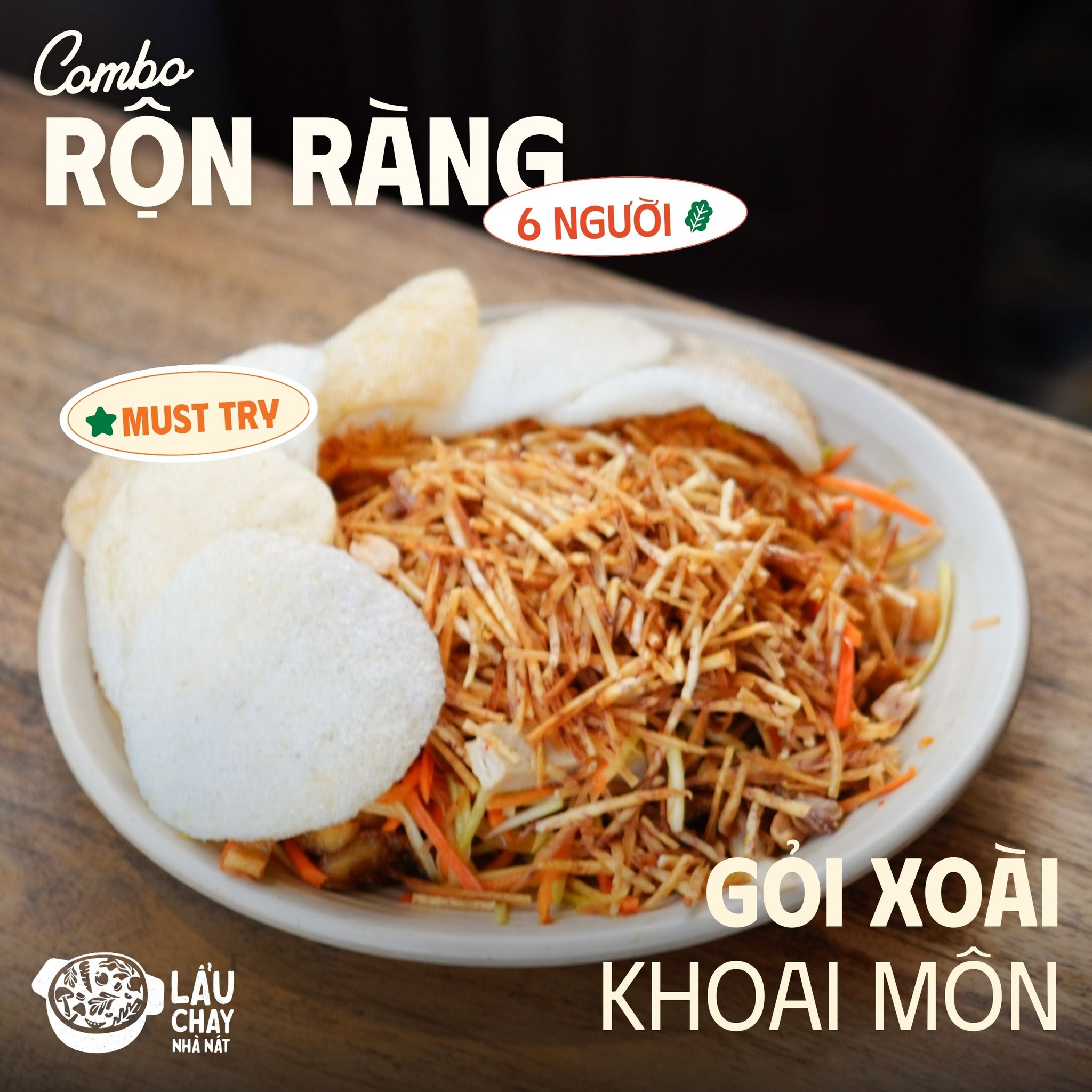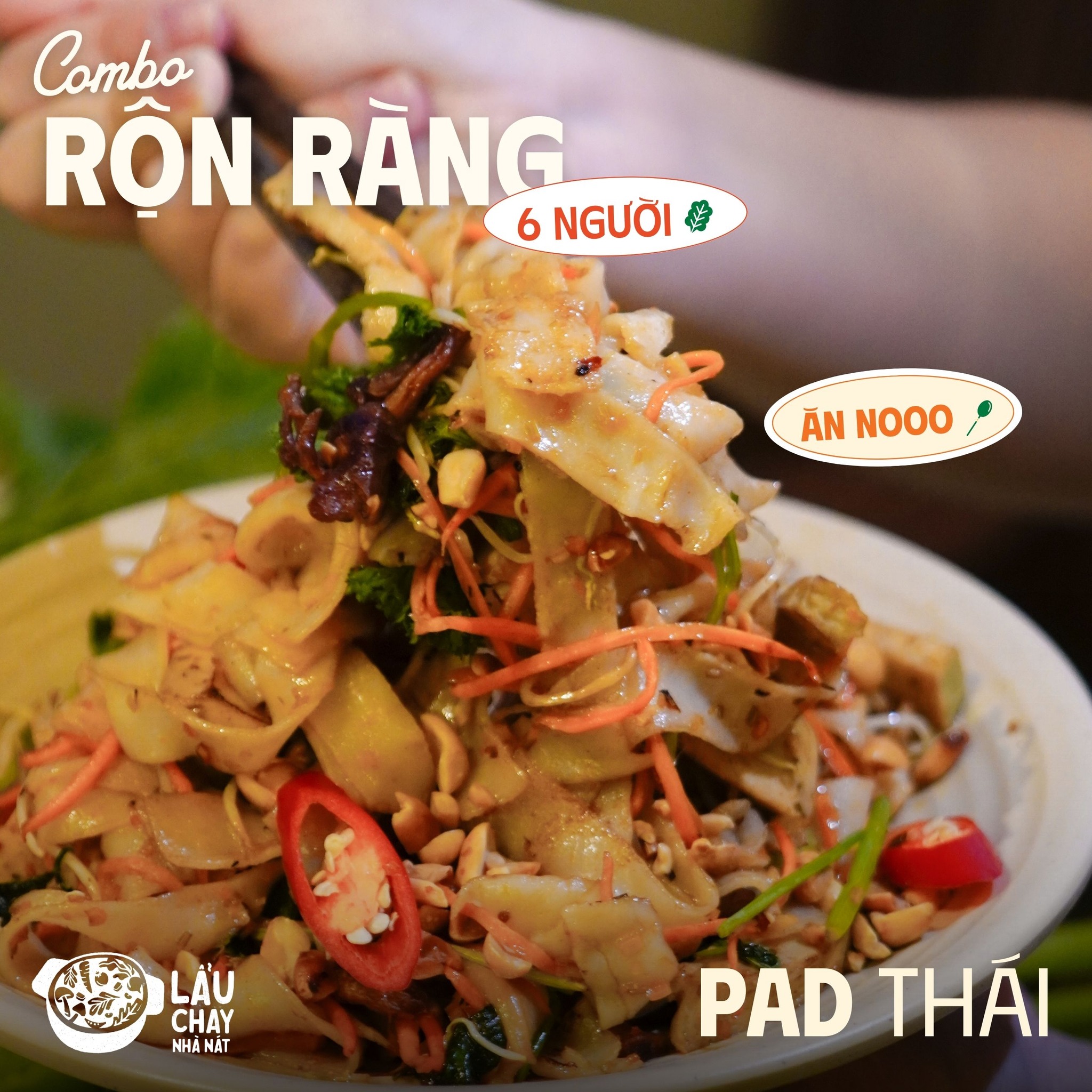 Một nồi lẩu Thái đậm đà đã có topping chay đầy đủ, RAU BÚN LẤY THOẢI MÁI và thêm 5 món best seller của Nhà Nát! Combo Rộn Ràng cho nhóm 5-6 người đã có mặt tại 5 cơ sở Nhà Nát để phục vụ bạn 🫡 – Tiết kiệm đến 80.000 VND!