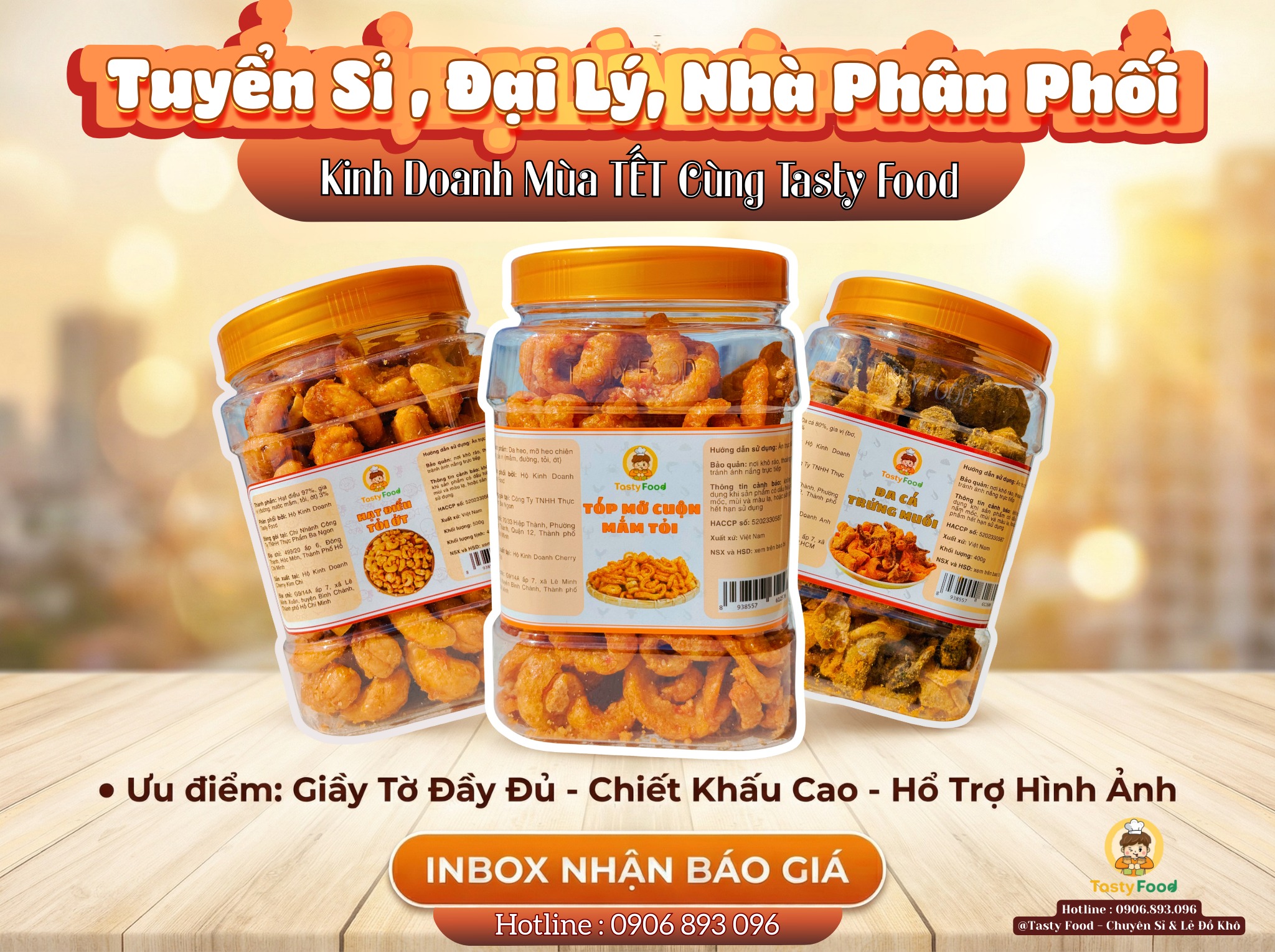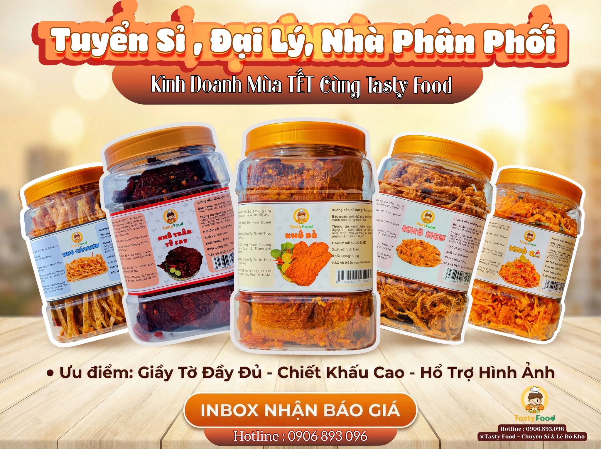 – Tết đến là lúc đồ ăn vặt, quà biếu, mâm nhậu gia đình lên ngôi. Nếu bạn đang tìm một mặt hàng dễ nhập, dễ bán, xoay vốn nhanh để kinh doanh Tết này, thì Tasty Food chính là lựa chọn an toàn & bền vững