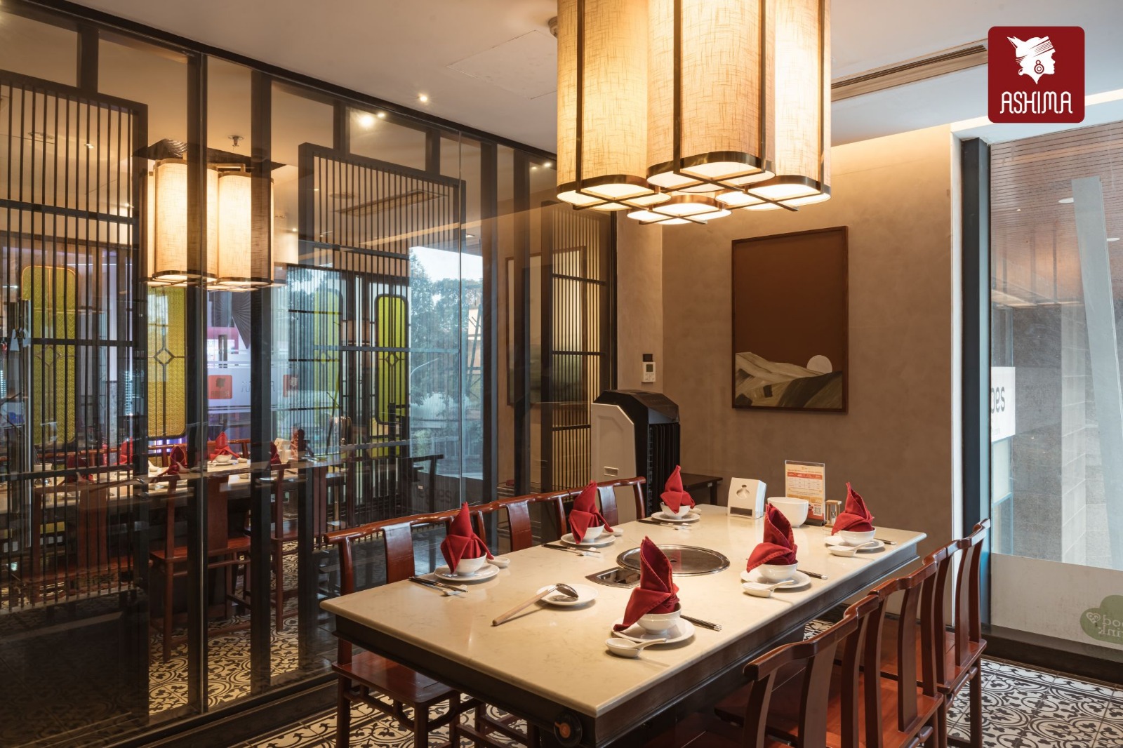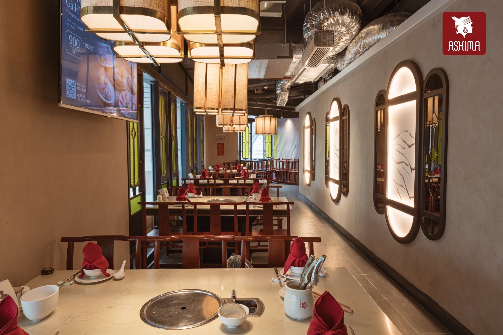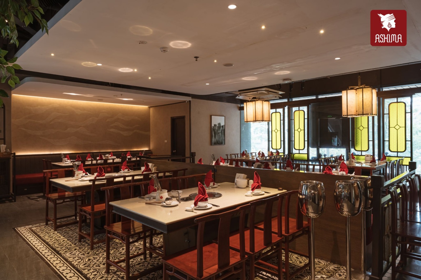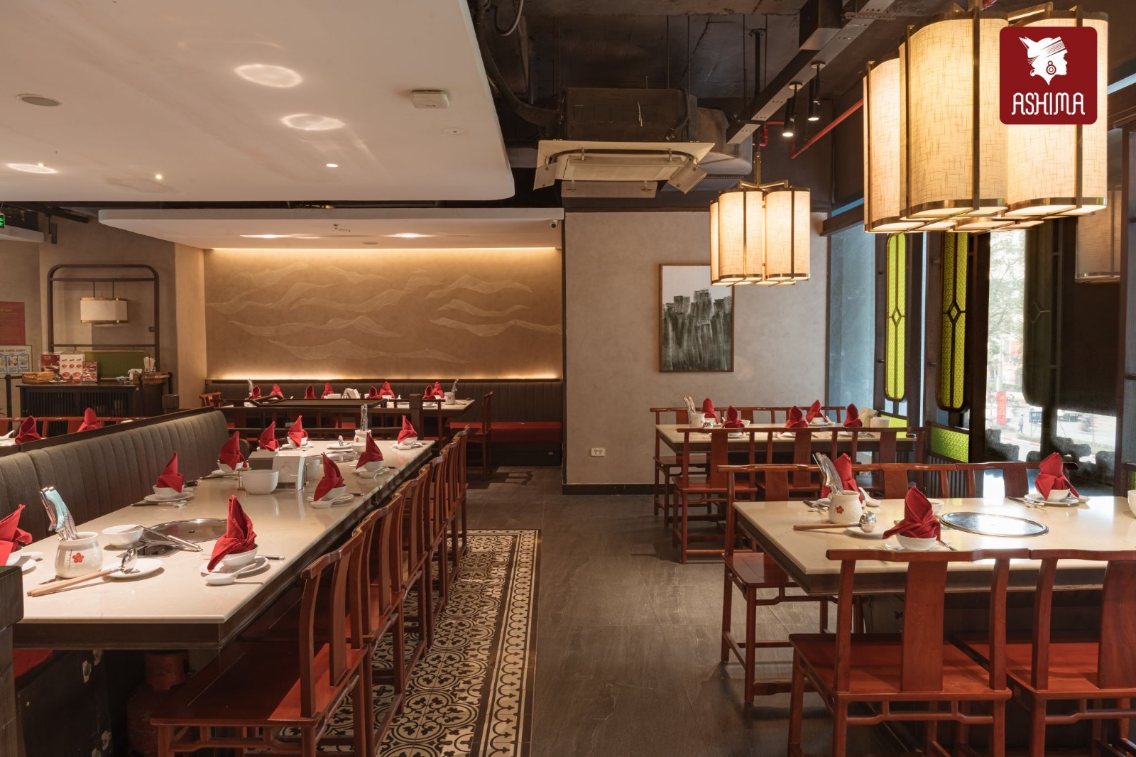 Lấy cảm hứng từ Shangri-La – vùng đất của sự an yên và hạnh phúc thuần khiết, Ashima Hoàng Đạo Thúy trở lại với không gian được nâng cấp. Không gian Á Đông đương đại được làm mới với gam màu trầm ấm, chất liệu gỗ tự nhiên, ánh đèn vàng dịu và bố cục thoáng đãng.