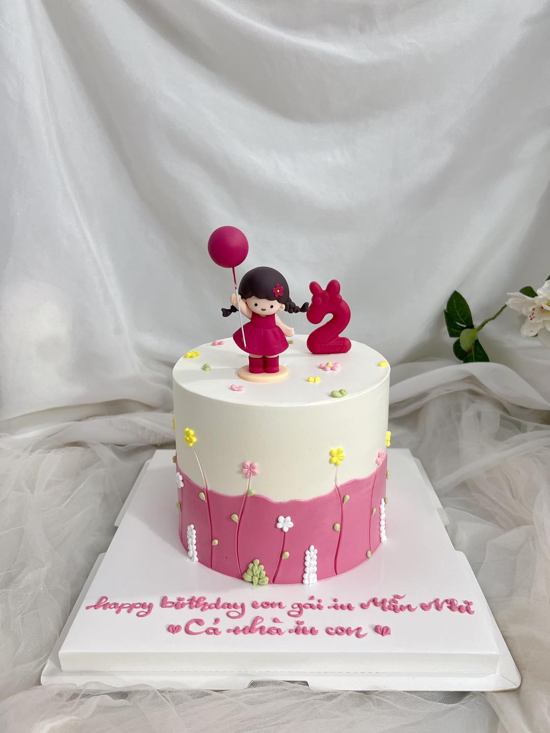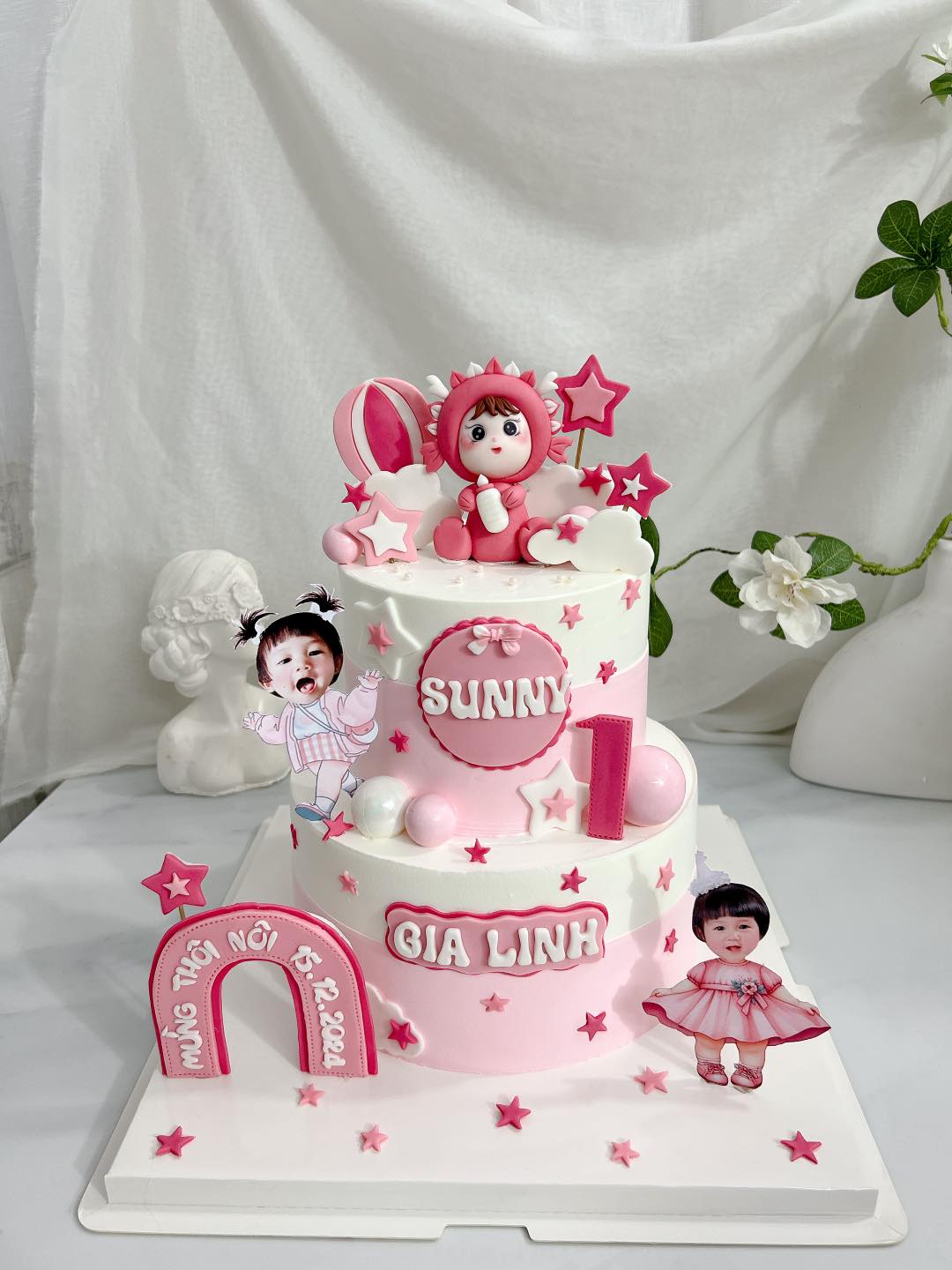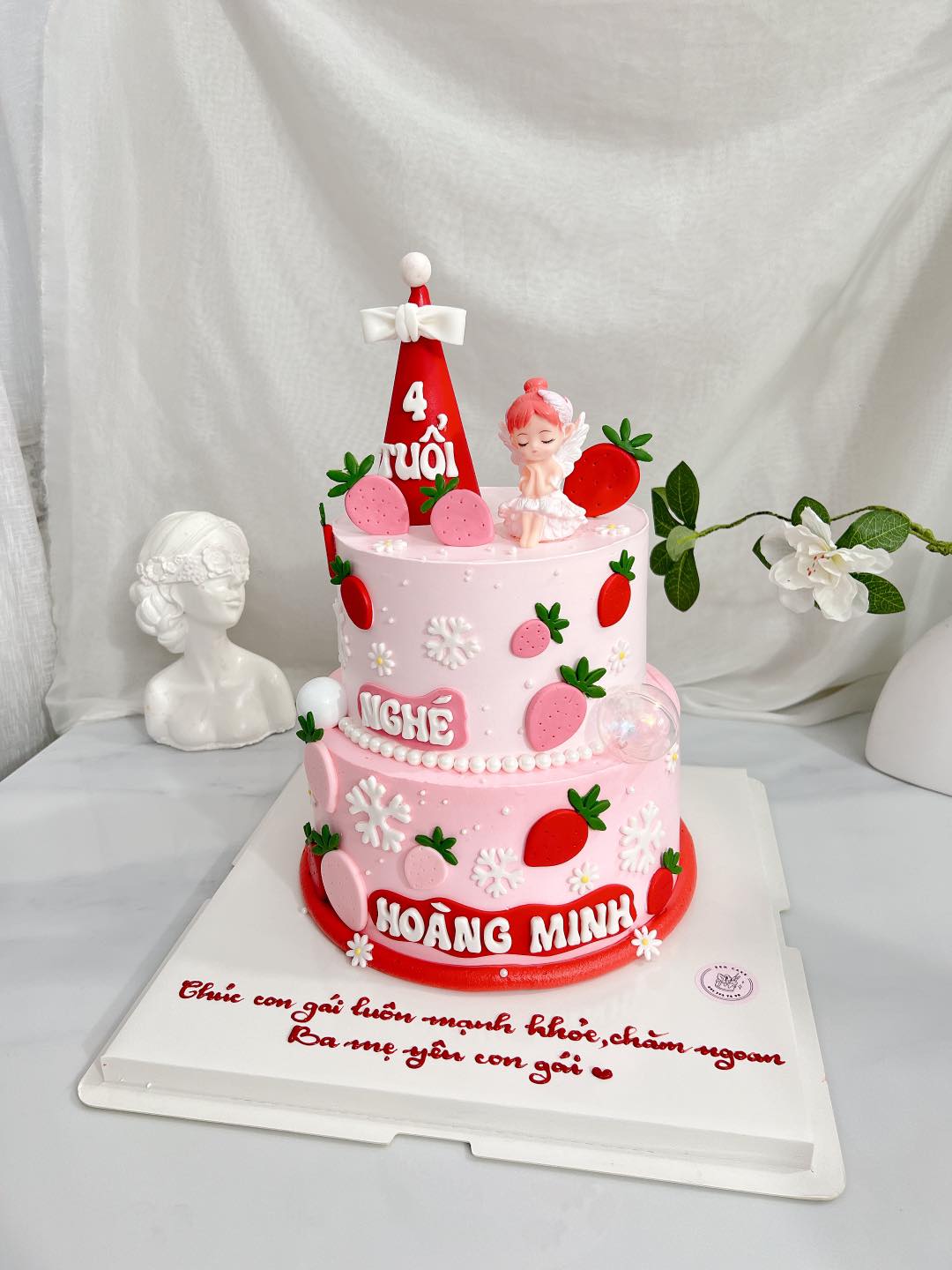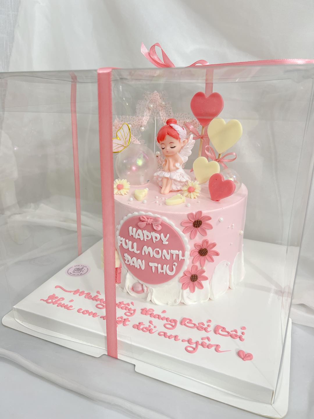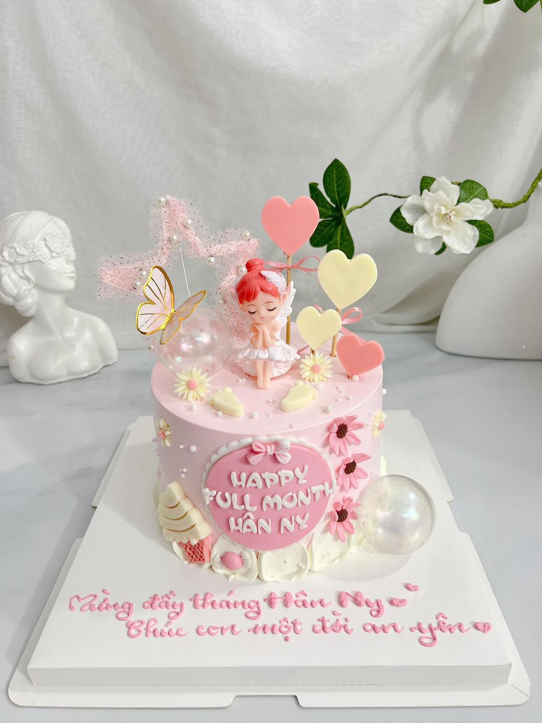 Bánh kem thôi nôi màu hồng cho bé gái ạ