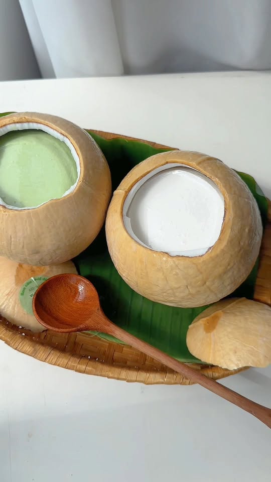 ✨ Rau câu trái dừa – đổ trực tiếp trong trái dừa tươi, nhìn xịn mịn, ăn siêu đã!