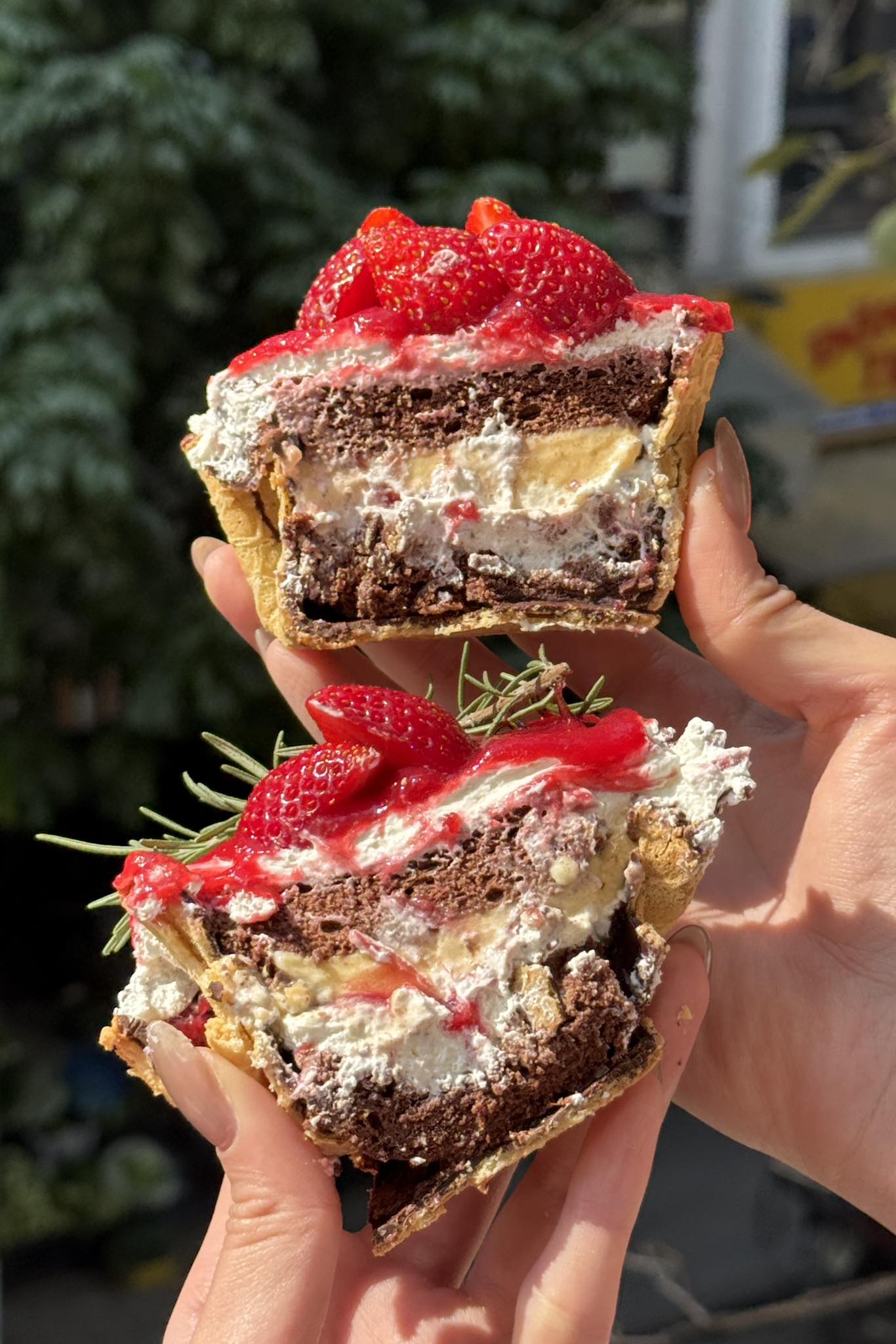 Gồm 7 tầng hương vị từ vỏ ốc quế tráng socola 65%