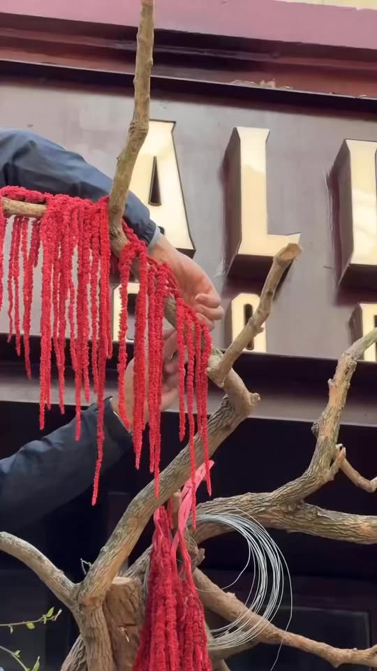 #Trang #hoàng #hai #cơ #sở #bằng #những #chất #liệu #mộc #cành #dền #rủ #nhuộm #đỏ #thân #gỗ #thô #ráp #và #những #phiến #đá #tự #nhiên.All #Day #kể #câ