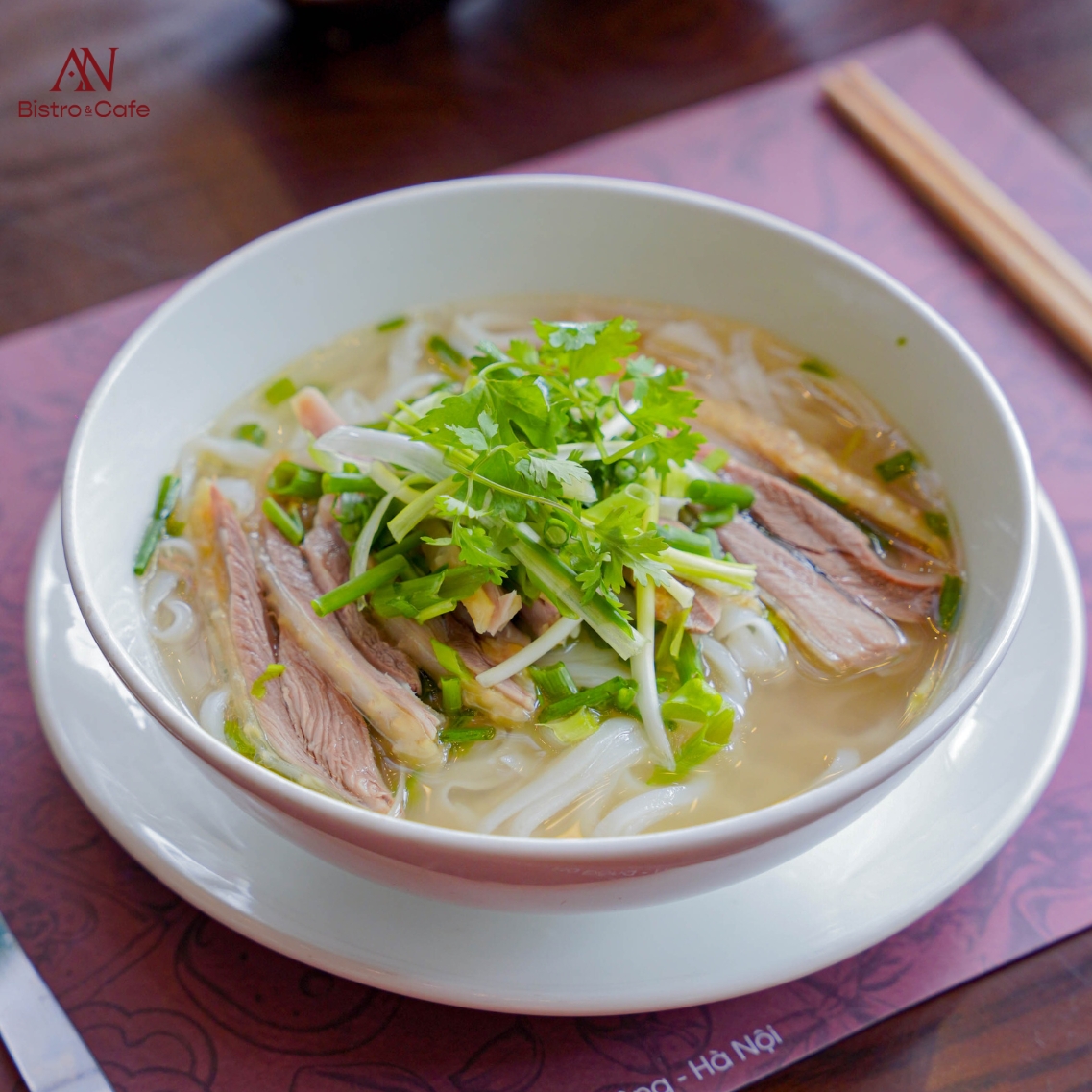Ghé AN vào mỗi sáng tinh khôi để thưởng thức món Phở Gà chuẩn vị phố cổ nóng hổi thơm ngon, với bánh phở mỏng dai, nước dùng sóng sánh ngọt thơm và thịt gà béo mềm. Nguồn nguyên liệu tươi sạch từ làng quê trù phú, đảm bảo bổ dưỡng, lại thêm bánh nước nhà AN luôn sẵn sàng cho một buổi sáng đủ đầy, bắt đầu ngày mới vui vẻ và tràn đầy năng lượng.