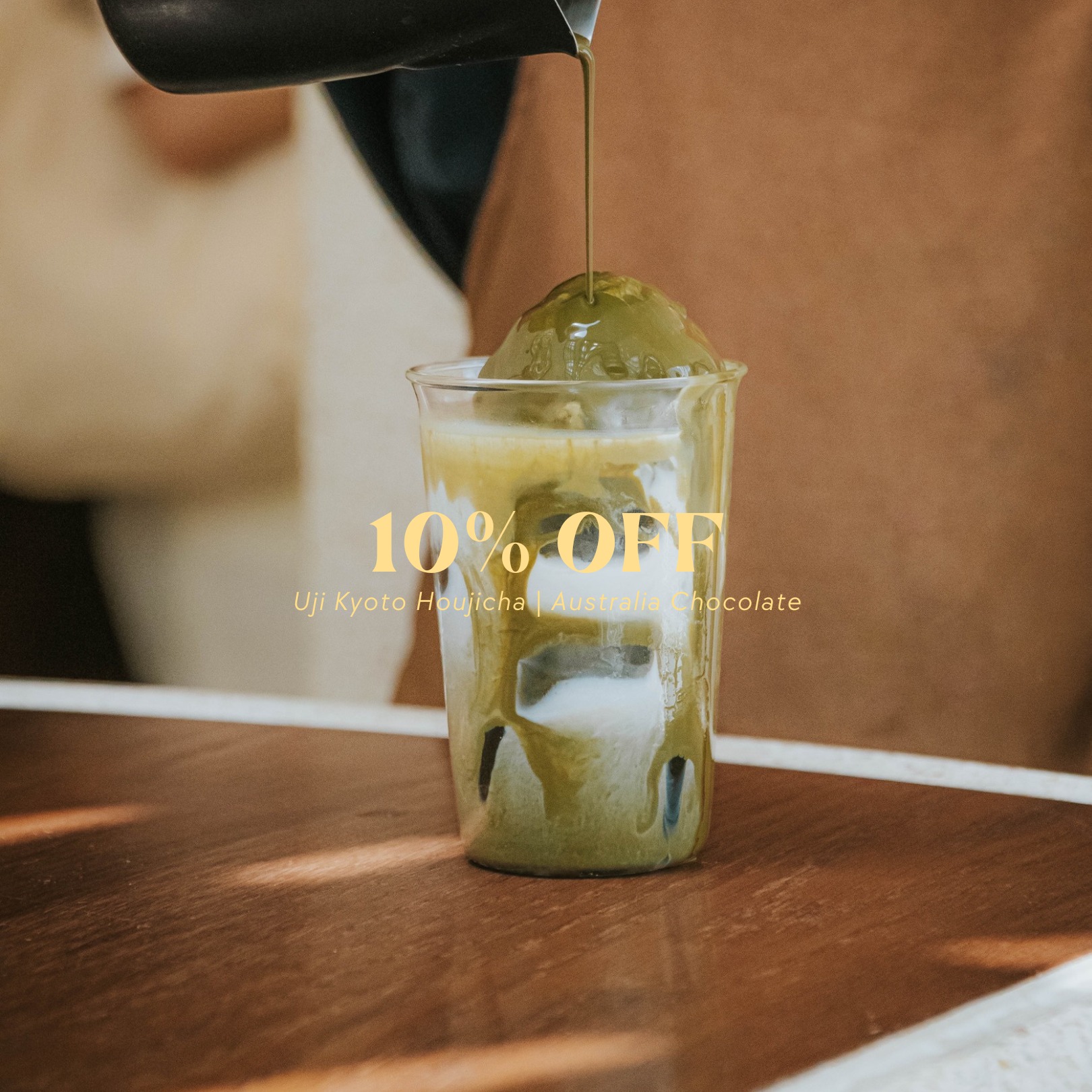 • Giảm 10% cho tất cả các món Uji Kyoto Houjicha và Australia Chocolate