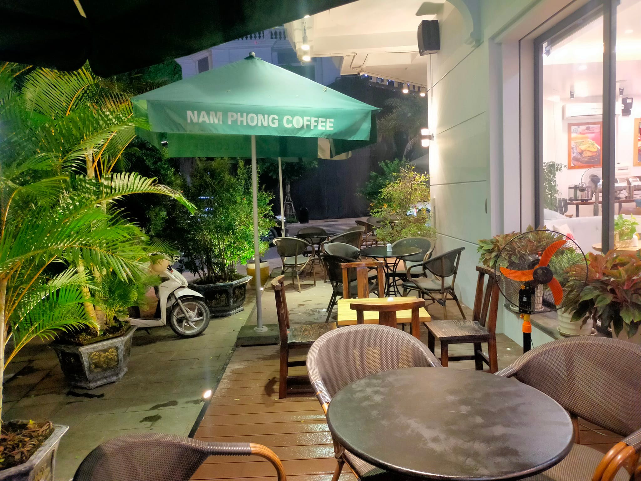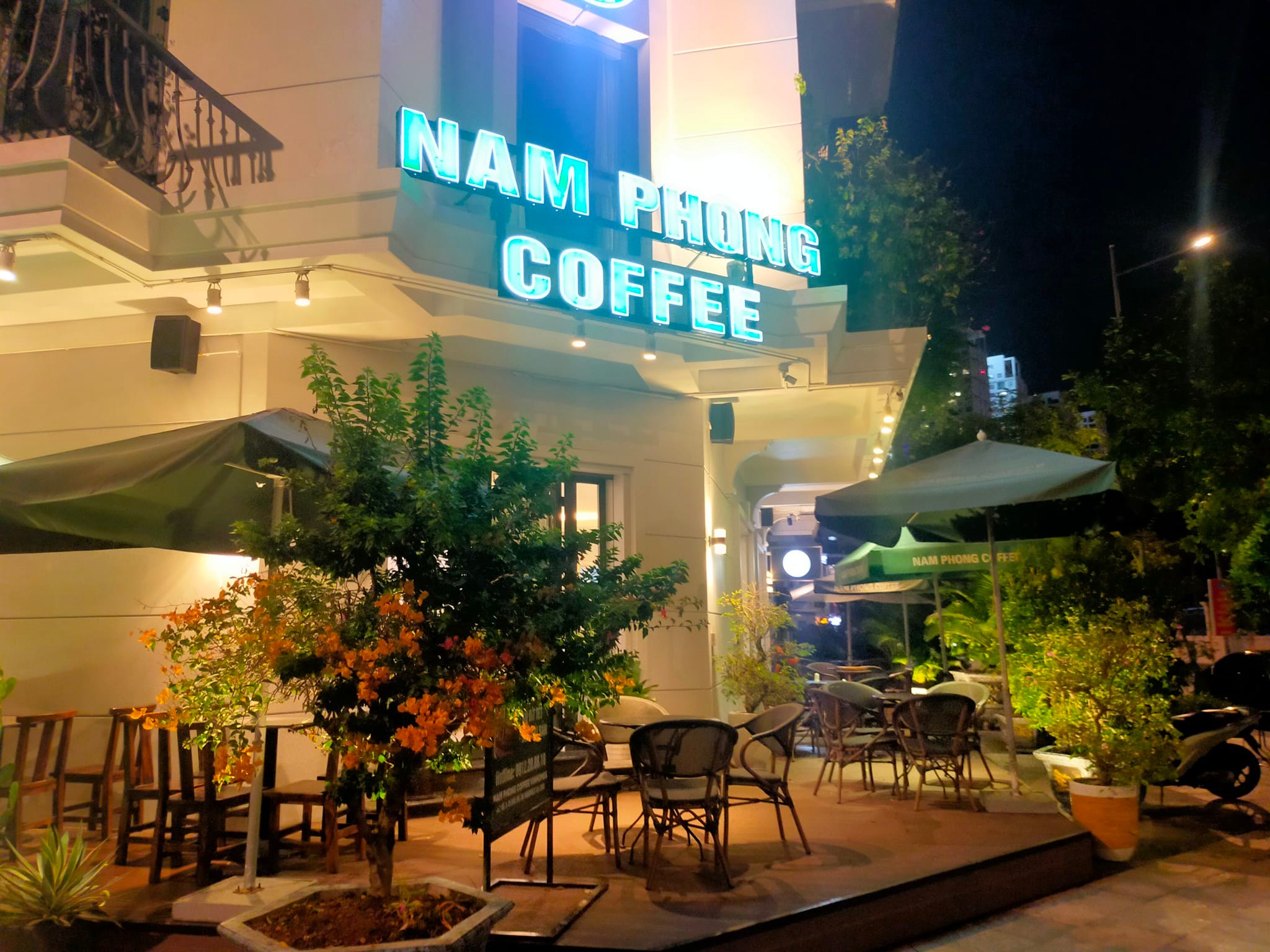 Đặc biệt, quán có không gian ngoài trời rất đẹp, View núi Bài Thơ và trục đường thông từ cung Văn hoá Việt Nhật với đường bao biển.