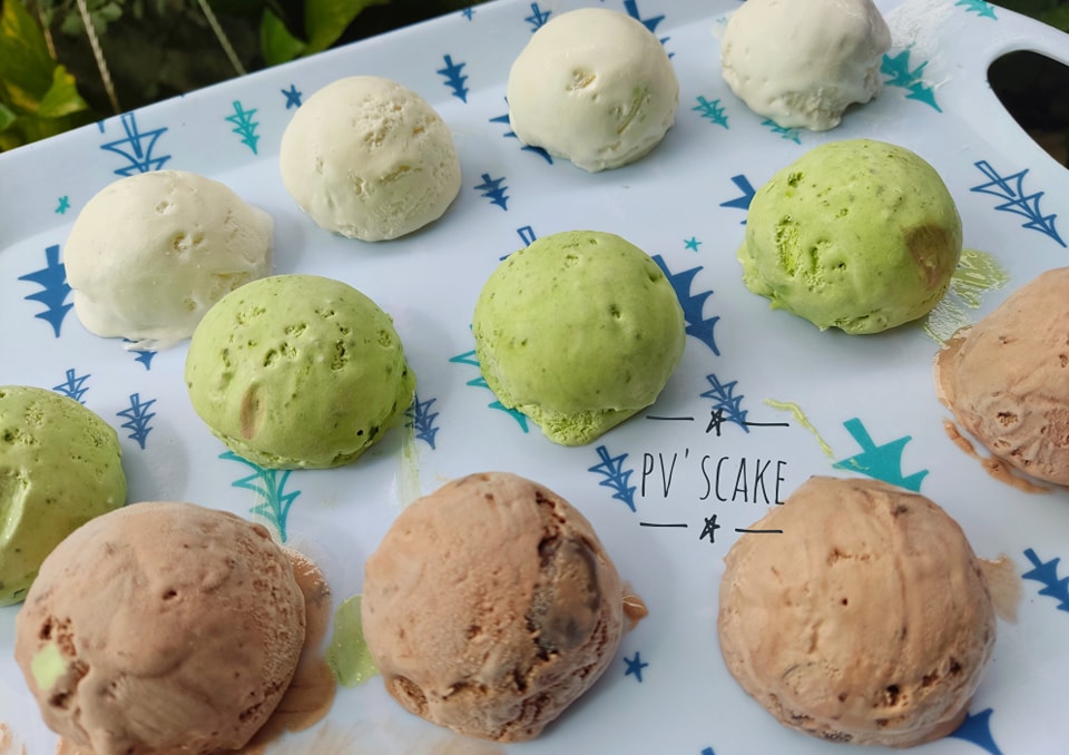 Lớp bánh mochi icecream nhà cô Zy với rất nhiều vị : trái cây các loại : dâu , đào , việt quất , kiwi … , matcha , chocolate mint , tiramisu , vanila , sầu riêng , cà phê .